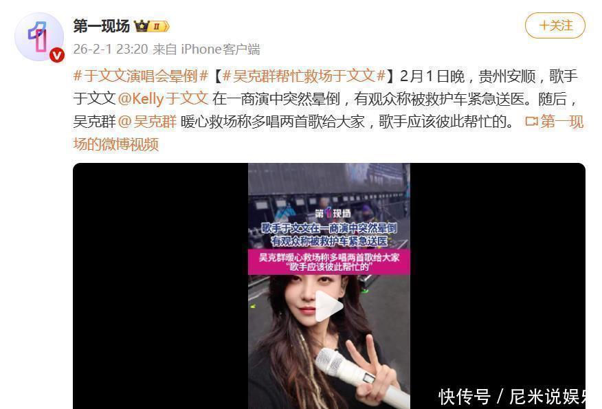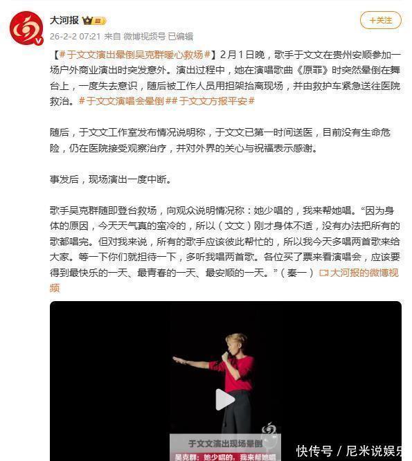 寒夜突发意外,却被同行的温情暖到!2日贵州安℃的低温户外商演上,于文文身着单薄演出服硬扛后突然晕倒,紧急送医的揪心时刻,吴克群挺身而出补唱救场,一句“她少唱的,我来帮她唱”,让全网直呼“这才是娱乐圈该有的样子”!